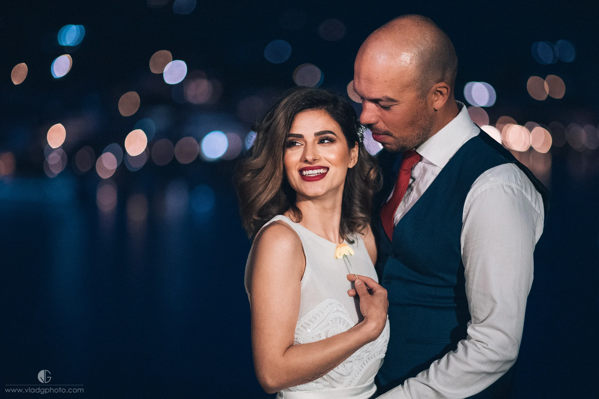 What are the ingredients of a beautiful wedding photoshoot I hear you ask? Well, you start by picking out a gorgeous bride and groom, you put them on a boat and you sail around in the Aegean Sea until you reach the beautiful island of Poros! From there on you walk around the winding stone-paved streets, and you end up on one of the highest points on the island. We were already familiar with the spot as we went there for the engagement photoshoot as well, so returning there in the evening allowed for exploring new ideas and do some more creative wedding photography.